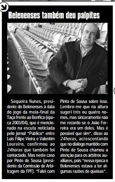 Esquecem-se estes infelizes de contextualizar e nestes caos de escutas o contexto é tudo. O LFV sugeriu uma lista de árbitros, tal como o presidente do Belenenses, o adversário na Taça de Portugal, também fez a sua lista. Ou seja, o arbitro era escolhido por consenso pelos dois clubes. Esta era uma tradição a partir dos quartos de final da prova.